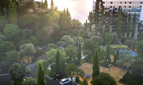 Общая площадь составляет более 2 га. Жилой комплекс имеет инфраструктуру, обеспечивающую комфортное существование. До закрытого пляжа можно прокатиться по канатной дороге. На территории имеется субтропический сад с ландшафтным дизайном, СПА-комплекс, бассейн, фитнес зал. На первом этаже расположена стойка администратора. Он поможет решить возникшие проблемы. Во дворе установлена детская и спортивная площадками, зона отдыха для барбекю.